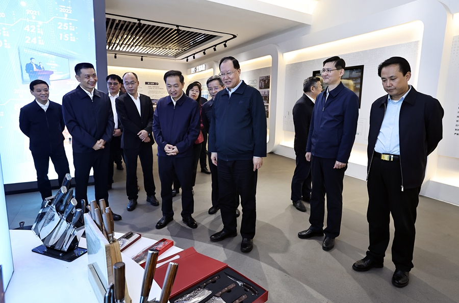 永兴县被称为“中国银都”,稀贵金属产业集聚度达81.5%,是国家大宗固废处理示范基地。走进中国银都文创园,毛伟明饶有兴致地参观了银制品展销中心,他指出,要持续放大独特的金银冶炼文化优势,推动“工业+旅游”融合发展,增强白银产业的知名度、美誉度,加快打造国家级稀贵金属产业集群,持续擦亮“中国银都”金字招牌。